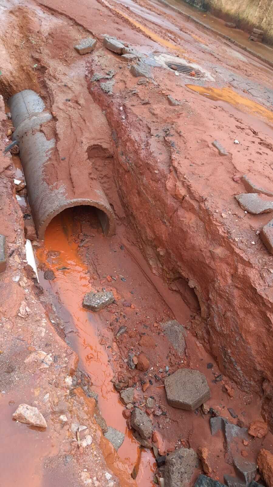Parte do manilhamento também foi afetada, e o serviço corre o risco de ser perdido, já que terra e areia se acumularam nas tubulações que estavam sendo instaladas.