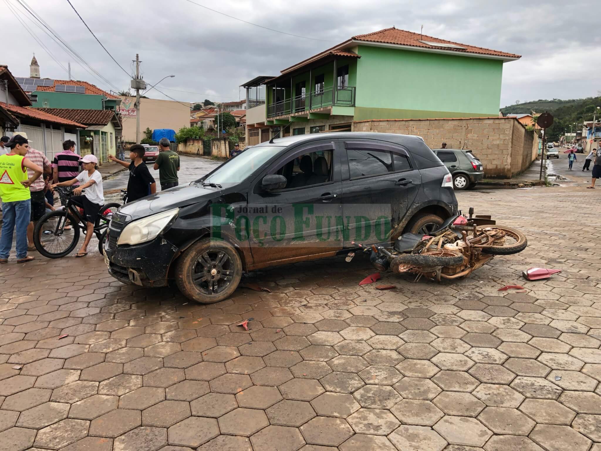 Uma motocicleta e um automóvel colidiram no final da Avenida João Gonçalves de Lima e início da Rua Coronel José